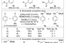 提高烷基胺对细胞色素p450的代谢稳定性的一种常用策略是在氮中心附近加入一个吸电子官能团,例如引入CF3基团。此外,氮原子的碱度降低通常会导致较高的生物利用度。在氮原子的β位置引入三氟甲基可以干扰烷基胺骨架化合物的理化性质,从而获得优异的体内性能(Figure 1a)。尽管将三氟甲基引入胺类化合物中可获得具有吸引力的结构,但直接获得这类有用化合物的方法仍然较少。使用亲电三氟甲基源,如Togni和Umemoto试剂,结合Lewis酸作为活化剂,是对含烯烃底物进行三氟甲基胺化反应的最常用策略(Figure 1b)。然而,在所有这些反应中,CF3基团至少连接在烯烃的受阻侧,这限制参与反应的底物类型。一个罕见的例外是铜诱导的方法,它促使NFSI形成亲电氮中心自由基。将N-中心自由基添加到烯烃上,然后进行三氟甲基化(Figure 1b)。 英国剑桥大学Matthew J. Gaunt课题组之前报道了一种可见光诱导下的羰基烷基化胺化方法,该方法通过烷基碘化物生成的烷基自由基添加到原位形成的烷基亚胺离子中,生成α-支链叔烷基胺,然后硅烷基试剂进行氢原子转移,得到叔烷基胺(Figure 1c)。于是,作者猜想CF3自由基这一亲电物种是否会与极性匹配的亲核烯胺结合,从而生成β-三氟甲基烷基胺骨架结构(Figure 1d)。最近,该课题组实现了在可见光诱导下,以乙醛、仲胺和三氟甲基碘化物为原料的β-三氟甲基叔烷基胺的合成(Figure 1e),其成果发表在近期的Chemical Science上(DOI: 10.1039/D0SC04853D)。 (图片来源:Chemical Science) 作者首先在可见光照射下,以吗啉和氢化肉桂醛作为偶联底物,以Ritter的CF3I·2 DMSO络合物作为三氟甲基自由基的来源进行反应,并以NaBH(OAc)3作为还原剂终止反应(Table 1)。在评估了溶剂和碱后,作者发现在含有4Å分子筛和三乙胺的DMF溶液中,室温下搅拌反应4小时,反应可生成近等摩尔量的仲烷基胺产物。在无碱条件下反应,产物生成量显著减少,这可能是由于在反应条件下生成了氢碘酸副产物。如果没有光则完全抑制了反应,添加TEMPO也抑制了反应,这支持了作者关于自由基过程的假设。 (图片来源:Chemical Science) 接下来,作者评估了可见光催化下的羰基三氟甲基胺化反应的合成潜力(Figure 2)。一系列仲烷基胺可以适用于该反应,常见的一系列候选药物中的环胺也是合适的底物,并以良好的收率提供β-三氟甲基叔烷基胺3a-3l。当底物引入多种官能团时,反应也可以顺利进行。含支链和直链烷基取代的胺以及包括氰基、吡啶和保护羟基在内的各种官能团反应良好,以较高的收率生成相应的叔胺3m-3q。接下来,作者用二苯基胺作为代表性的偶联剂评估了醛组分的范围。一系列功能化的线性醛可以很好地转化为相应的β-三氟甲基叔烷基胺。γ-支链醛的产物3t和3u的收率较高,这一结果表明,反应不受烯胺中间体邻位空间效应的影响。作者研究发现,含有一系列官能团的醛类是合成化合物3r-3aa的有效偶联底物。在反应条件下,含富电子杂环的醛(3y、3z和3aa)可耐受该反应。由于存在空间位阻,三氟甲基自由基在三取代烯胺上的加成反应非常缓慢。鉴于二烷基胺存在于一系列小分子药物和临床前候选药物中,因此,利用原料醛和三氟甲基碘化物对这些分子进行修饰,进而构建三氟甲基叔胺在开发新药的应用方面有着重要的意义。作者对五种含有二级胺结构的药物和药物片段也顺利进行了羰基三氟甲基胺化反应,得到了叔烷基胺3ab-3af。 (图片来源:Chemical Science) 最后,作者展示了该三氟甲基化策略对于快速生产具有生物活性的小分子用以证明其潜在效用有着重要的意义。小分子叔胺农药丁苯吗啉和苯锈定的叔胺中心的β位置有一个甲基,由于它们在保护全球谷物方面起重要作用,因此对于人类的生产生活意义重大。由于丁苯吗啉类似物在宿主系统内的代谢速度快,其抗侵袭性真菌感染(IFI)的体内表现受到严重限制。因此,提高这些化合物的代谢稳定性是防治IFI的一个活跃研究领域。作者以2,6-二甲基吗啉和哌啶为仲胺底物,利用该羰基三氟甲基胺化反应有效地取代了这些分子的甲基。在反应条件下,三氟甲基丁苯吗啉和苯锈定(4a)和(4b-d)的三氟甲基化产物很容易以良好的收率获得,证明了该方法在药物优化中的潜在应用(Figure 3)。