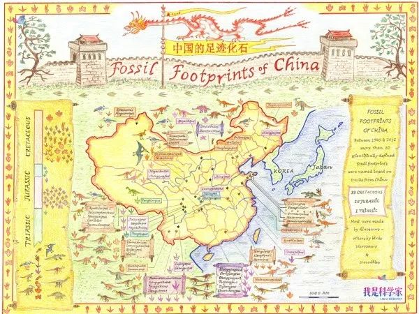 中国已经有很多省份,发现了恐龙骨骼化石。但是也有很多地方,没有任何恐龙骨骼化石被发现。碰巧的是,这些地方恐龙时代的地层里面出现了恐龙足迹,所以我们可以拿恐龙足迹来推断:这个地方生活过什么恐龙,它们做过什么。