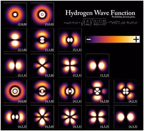 氢原子波函数和不同轨道电子密度分布 来源:网络