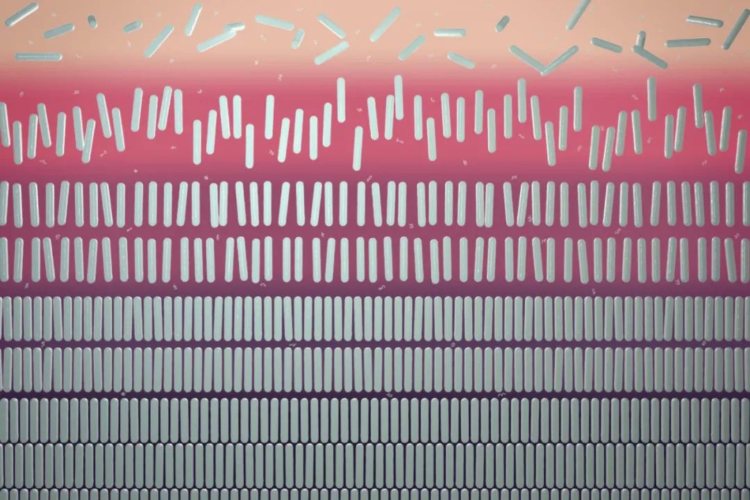吉布斯相律指出,纯物质最多能同时以3种相态共存,比如冷冻水融化时最多可以同时呈现液态水、冰和气态三种状态。但一项《物理评论快报》上的新研究挑战了这一经典理论,提出了4种或5种相态共存的可能性。研究人员设计一个由杆状颗粒、聚合物及液体介质构成的胶体系统,由于颗粒间的排除体积效应,它们会达到了五相同时存在的平衡态,即气相、两个液晶相(近晶相液晶和向列相液晶)和两个沉在底部固相。他们发现,除了温度和压强之外,颗粒较自身直径的相对长度和较溶液中其他颗粒的相对直径,这两个变量也决定了存在的相态数。