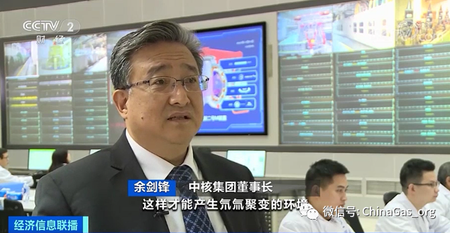 中核集团董事长 余剑锋:像这样的环流器装置要把温度加到一亿多摄氏度,这样才能产生氘氚聚变的环境。利用这个平台,我们就可以试验氘氚反应所有的参数测量,未来聚变堆工程化应用技术的研发,如何把技术应用到民用里面提供能源。