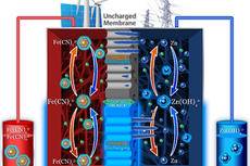 (a)带电荷排斥膜的碱性锌液流电池示意图。
