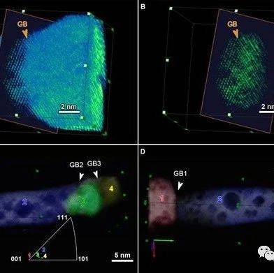 图2. 多晶的三维原子尺度定向分析。