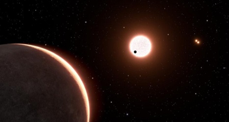 在红矮星trappist - 1周围发现的最遥远的外行星上,艺术描绘对这一观点的概念图,图片:ESO/M. Kornmesser.