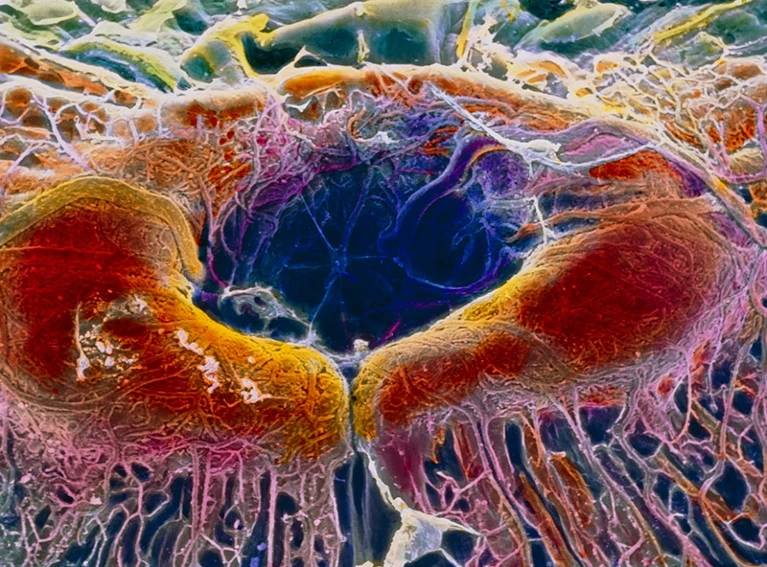 在过去的十年中,莫格斯的团队已经弄清了 VI 型分泌系统的一些细节,这是细菌的一种防御机制。它就像一个分子注射器,将毒素注射到邻近的细胞中。毒素会破坏细胞壁,撕裂细胞膜,并吞噬细胞的能量来源。“它们相当阴险,”他说。