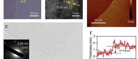 石墨烯等二维材料一直是众多科学发现的主要关注点。然而,过渡金属单硫属元素化物(如IV族单硫属元素化物(MX,M = Sn,Ge,Pb等,X = S,Se))的巨大潜力仍相对未开发。这些材料的理论研究已经揭示了其量子极限的特殊电子和光电性能,但由于无法获得大的长宽比,因此尚未受到实验性推力。而原子层面的轻薄材料尽管具有引人入胜的性能,但仍面临着不断的挑战。单硫化锡(SnS)是一种低成本,自然丰富的层状材料,其带隙可调,在原子厚度下显示出优异的载流子迁移率和大吸收系数的特性,因此其对电子和光电子学具有非常大吸引力。然而,缺乏成功的合成技术来制备大面积和原子层面尽可能薄的SnSS层,主要是由于强的层间相互作用阻碍了这些特性在通用应用中的探索。