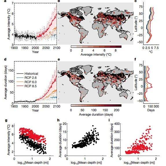 研究团队的预测包含了深达60米的湖泊,他们发现,更深湖泊的热浪持续时间更长,但强度更弱。