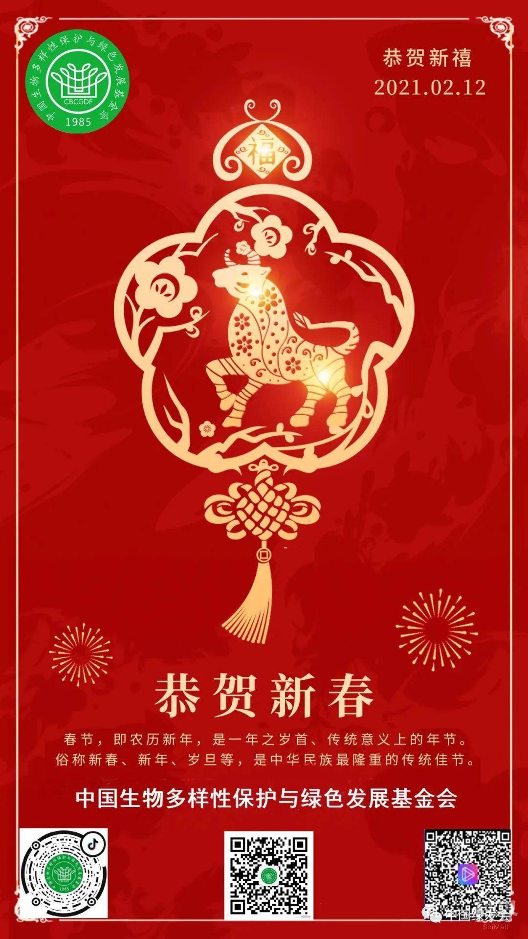 在这个阖家欢乐的时间,中国生物多样性保护与绿色发展基金会祝大家一帆风顺、二龙腾飞、三羊开泰、四季平安、五福临门、六六大顺、七星高照、八方好运、九九同心、十全十美。