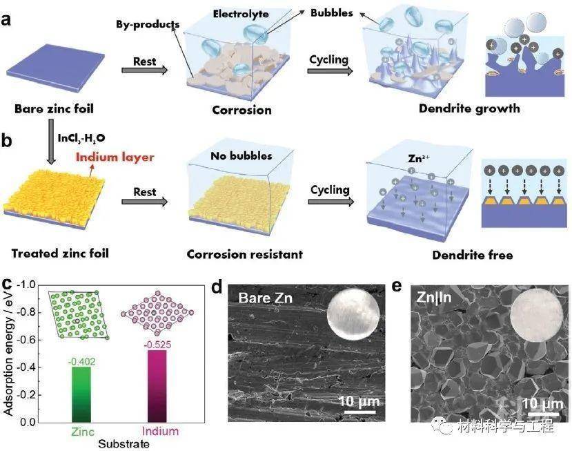 天津大学罗加严教授与复旦大学夏永姚教授合作利用一种简易安全的化学法制备了锡基人工层修饰的金属镁负极。金属镁在SnCl2/DME溶液中发生离子交换反应形成修饰层,在该修饰层中,Sn和Mg2Sn可作为Mg2+的快速离子通道,绝缘组分MgCl2/SnCl2则提供了必要的电势梯度避免镁沉积在修饰层的表面。