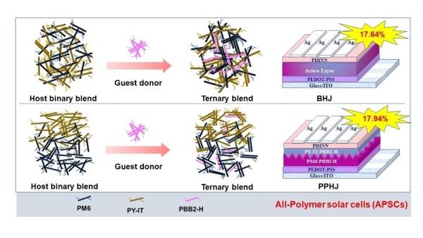 聚合物太阳能电池(PSCs)因具有质轻、柔性以及可大面积印刷制备等优点而备受学术界和产业界的广泛关注。得益于稠环类小分子受体(SMAs)材料的快速发展,PSCs已实现超过18%的能量转换效率(PCE),为有机光伏的大规模生产和商业化应用带来了巨大信心和动力。相较于SMAs基PSCs,全聚合物太阳能电池(all-PSCs,电子给体和电子受体皆为聚合物半导体)则拥有更为优异的形貌稳定性和机械耐久性,在柔性、可穿戴电子器件领域展现出广阔的应用前景。然而,受限于高性能聚合物受体材料的匮乏,目前all-PSCs的器件效率却远滞后于基于SMAs的PSCs。