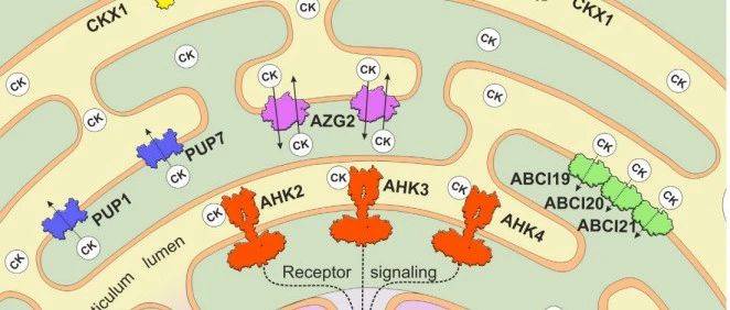 细胞分裂素是典型植物激素(CKs),其含有多个有活性的核酸基团:包括异戊烯腺嘌呤、顺式或反式的N-异戊烯腺嘌呤以及它们的前体和代谢产物。其组成部分和比例在不同物种、器官和发育阶段也不相同。细胞分裂素调控了许多植物生长和发育过程,同时也参与了应激反应。因此,研究细胞分裂素的代谢、运输和信号通路是至关重要的。其中一个关键的问题是,细胞分裂素受体在何处识别到细胞素,并发送细胞分裂素信号给响应基因。