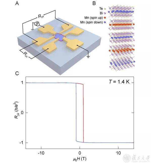 2010年,中国科学院物理研究所/北京凝聚态物理国家研究中心方忠、戴希等理论预言磁性离子掺杂的拓扑绝缘体Bi2Te3是磁性拓扑绝缘体,具有量子反常霍尔效应,并与物理所和清华大学实验团队合作在2013年在Cr掺杂的(Bi,Sb)2Te3薄膜中首次观测到量子反常霍尔效应。然而,磁性离子的引入会导致样品组分的不均匀,需要精确调控生长条件,才能在极低温观测到量子反常霍尔效应。