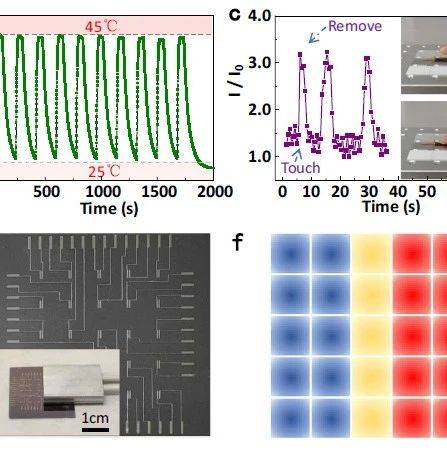 图1.a:谐波测试示意图,b、c:不同温度和构型下的非互易电荷输运,d、e:单向磁电阻与磁场及电流密度均成正比,f:非互易输运系数随温度非单调变化