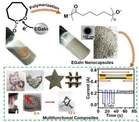 镓铟锡合金液滴是液态金属家族的重要成员,本身具有极大的表面张力,因此在空气或NaOH溶液中呈球状。将液滴置于多孔材料上方时,表面张力与液滴重力相平衡,液态金属无法进入材料中的孔洞。只有对浸润在NaOH溶液中的液滴施加电压时,液态金属表面张力急剧减小到接近于零,重力占据主导地位,液态金属才能进入微孔。进入微孔后,液态金属发生形变,其表面氧化膜也处于动态平衡之中,厚度保持在2-3纳米,使液态金属保持极好的流动性,实现穿越。