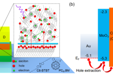 受莫尔晶格结构的启发,该研究团队利用纳米压印技术,使用低成本的DVD光盘,将双层光栅光学结构(上下层光栅呈现一定夹角)引入MAPbI3钙钛矿活性层中,制备了高性能的偏振敏感钙钛矿光电探测器。从实验和理论证明,制备的相互堆叠双光栅结构实现了对入射光的调控,光子被局域在钙钛矿活性层中,实现了对光的高效吸收。优异的器件探测性能来自于双光栅结构良好的光学和电学特性。在光学特性方面,顶部光栅可以减少光反射损失,底部光栅可以增强光反射吸收,同时光栅结构具有衍射效果,钙钛矿与空气的高折射率差产生波导效应,以上光学协同作用可以有效提升光程与光吸收,产生更多的载流子。充分印证了莫尔结构“1+1>2”的特性。在电学特性方面,使用纳米压印技术,提高了钙钛矿的结晶质量,减少了表面缺陷,载流子被复合几率减小,更多的载流子可以被收集。