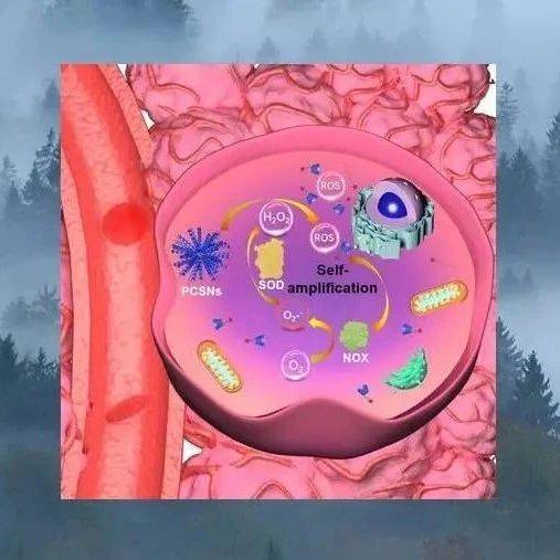 (b)通过EPR效应以及随后的细胞内化,PTCG NPs在肿瘤中的高度蓄积及作用过程示意图。