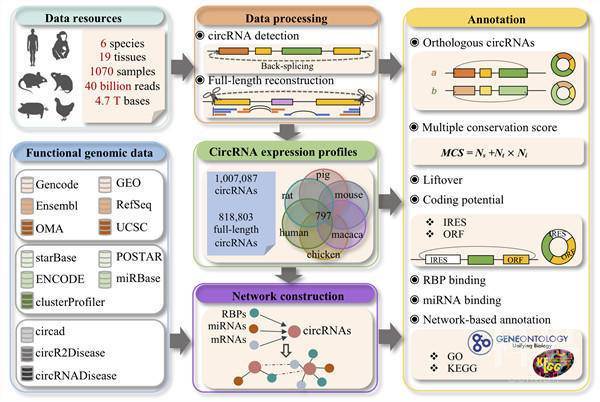 该工作由赵方庆课题组的研究生张金阳,陈帅和杨静雯完成,并得到了科技部重点研发计划和国家自然科学基金委及中国科学院的经费支持。赵方庆团队在前期的工作中建立了环形RNA识别、转录本组装、可变剪接检测及定量等方法,相关研究发表在相关工作发表在Genome Biology (2015)、Nature Communications (2016,2020)、Briefings in Bioinformatics (2017)、Trends in Genetics (2018)、Genome Medicine (2019)和Cell Reports (2019)。这些研究丰富了我们对环形RNA的组成及结构的认识,为深入了解这一崭新类型的非编码RNA分子提供了重要工具和数据支持。