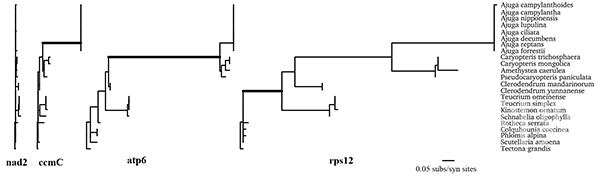 中国科学院植物研究所研究员汪小全团队对裸子植物所有13个科的代表性物种进行了DNA和cDNA高通量测序,并对其线粒体基因组进行了拼接。通过对基因的测序深度及其在基因组中的相对拷贝数、结构、RNA编辑位点、进化速率、GC含量及蛋白质疏水性等方面进行比较分析,揭示了裸子植物线粒体基因含量的变化及丢失基因的进化命运;结合已发表的陆地植物线粒体基因组数据,探讨了陆地植物线粒体基因组成差异的影响因子。研究发现:(1)苏铁类、银杏和松科植物的线粒体基因组编码全部41个蛋白质编码基因,而Conifer II(除松科外的其他松柏类植物)和倪藤类植物的线粒体基因数目大幅减少。在Conifer II中,线粒体基因的转移非常频繁,但直接丢失很少发生;在倪藤类植物中,线粒体基因的转移和丢失均非常频繁。在Conifer II和倪藤类中,有五个相同的基因转移到核基因组,但这些基因的转移是在两个支系各自的共同祖先中独立发生的。(2)与被子植物中的线粒体基因转移/丢失事件(通常发生在某个属甚至某个种中)相比,在裸子植物中(除麻黄属外),大部分线粒体基因转移/丢失事件发生得非常早。(3)根据转移基因的RNA编辑位点分布及内含子数目和相位的差异,推测Conifer II和倪藤类植物的线粒体基因可能通过两步转移机制进行转移,即反转录转座和后续DNA介导的基因转移。(4)基于该研究获得的裸子植物线粒体基因数据,结合已发表的陆地植物线粒体基因组进行综合分析,发现基因长度、GC含量、疏水性和核苷酸替代速率可能与陆地植物线粒体基因组的基因组成差异相关。