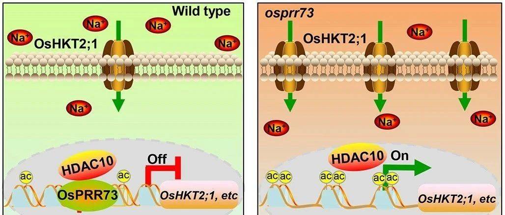 盐胁迫是影响水稻等粮食作物产量的主要非生物胁迫因子之一。近年来,由于不合理的农业灌溉及全球气候变暖所致的海水倒灌,导致土壤盐碱化问题日益严重。挖掘耐盐高产的水稻品种,有助于扩大水稻的种植面积,提高作物产量。植物生物钟可以感知并整合外界环境信号,在调节植物生长发育以及胁迫响应的过程中起到关键作用,然而生物钟如何协调盐胁迫和开花时间的作用机制仍不清楚。