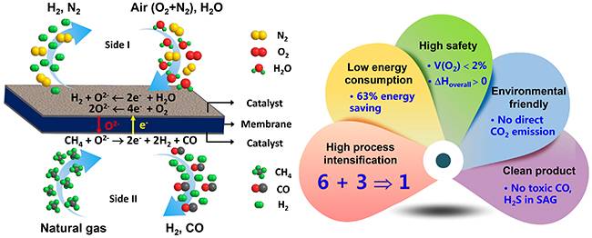 ● 图3b绘制了2020年10月2日整个晴天期间进料、滤液和残渣气体的累积量,其中不定期的气体成分分析结果如滤液和残渣曲线所示。分水板反应器中太阳光照强度和气体析出速率的变化如图3c所示。光催化板式反应器的产气率随天气条件的变化而迅速变化。在106.9 kPa的大气压和24.4℃的环境温度下收集的全天湿氢气总进料量为970L。由于原料气中氢和氧的摩尔比为2.0,水的饱和蒸气压约为3.0kPa,因此收集到的产物气体中含有27.2mol的氢。膜分离得到505L饱和水蒸气的富氢滤液,氢氧摩尔比平均大于94%,氢产率为19.9mol。因此,即使本文使用的商用膜不是为氢氧分离而设计的,氢回收率也达到了73%。在整个现场测试过程中,气体分离膜装置运行正常,没有恶化迹象,且与不同天气条件下湿氢氧气体的产量变化无关。