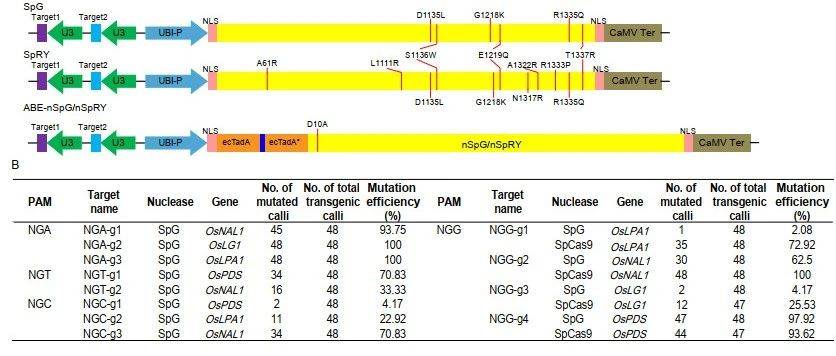 4. Xu, Z., Kuang, Y., Ren, B., Yan, D., Yan, F., Spetz, C., Sun, W., Wang, G., Zhou, X., and Zhou, H. (2021) SpRY greatly expands the genome editing scope in rice with highly flexible PAM recognition. Genome Biol. 22: 6.