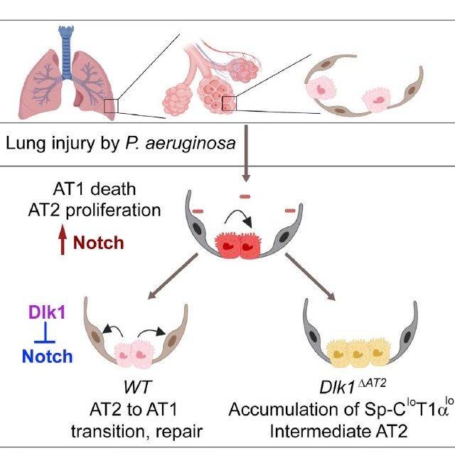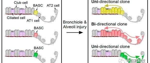 图注:单个标记的BASC在损伤下具有向支气管和肺泡区域双向分化潜能