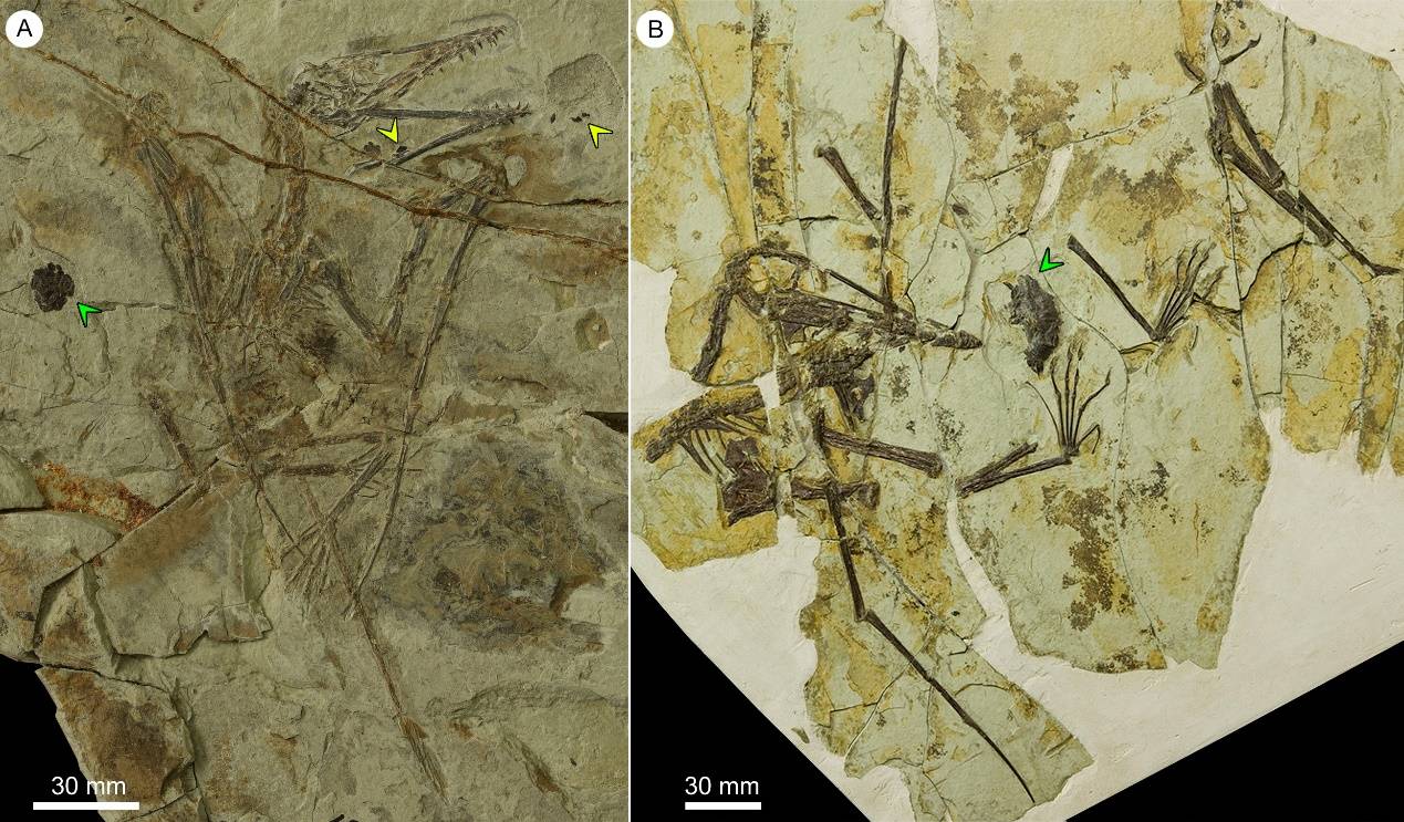图. 与食团共同保存的两件中国鲲鹏翼龙化石 文中图片由中科院古脊椎所提供