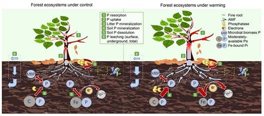 增温背景下森林生态系统磷循环示意图。刘菊秀团队 供图