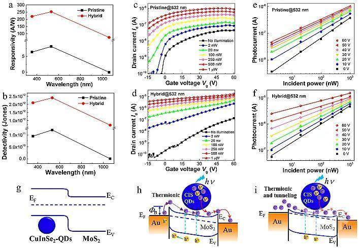 鉴于此,研究开发了一种基于层状三元碲化物InSiTe3的光电探测器,合成出高质量的InSiTe3晶体,并通过拉曼光谱分析了其拉曼振动模式。InSiTe3的间接带隙可以从1.30 eV(单层)调节到0.78 eV(体块)。此外,基于InSiTe3的光电探测器表现出从紫外到近红外光通信区域(365-1310 nm)的超快光响应(545-576 ns),最高探测率达到7.59×109 Jones。这些出色的性能价值凸显了基于层状InSiTe3的光电探测器在高速宽带光电探测中的潜力。研究工作得到国家自然科学基金、安徽省领军人才团队项目、安徽省自然科学基金、安徽省先进激光技术实验室开放基金和香港理工大学的支持。