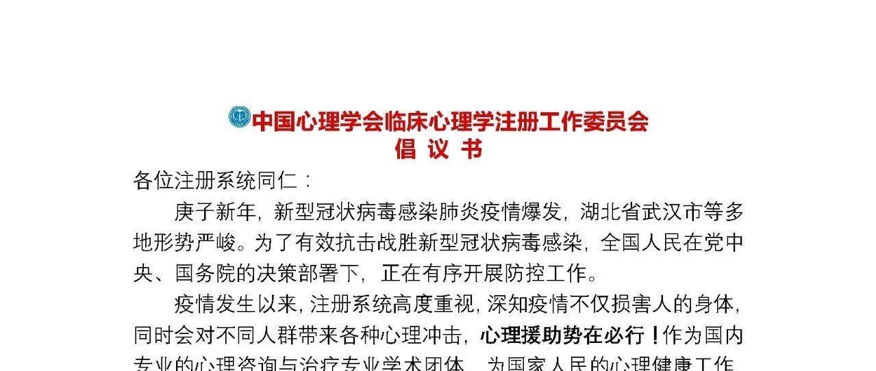 中国心理学会学校心理专业委员会致全国中小学心理健康教育教师同仁的倡议书