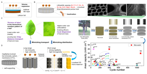 图3.应用本研究工作所发展的定量分析方法并结合形貌表征,绘制的在C/5(a)和C/2(b)不同倍率充放电循环过程中金属锂负极结构演化示意图