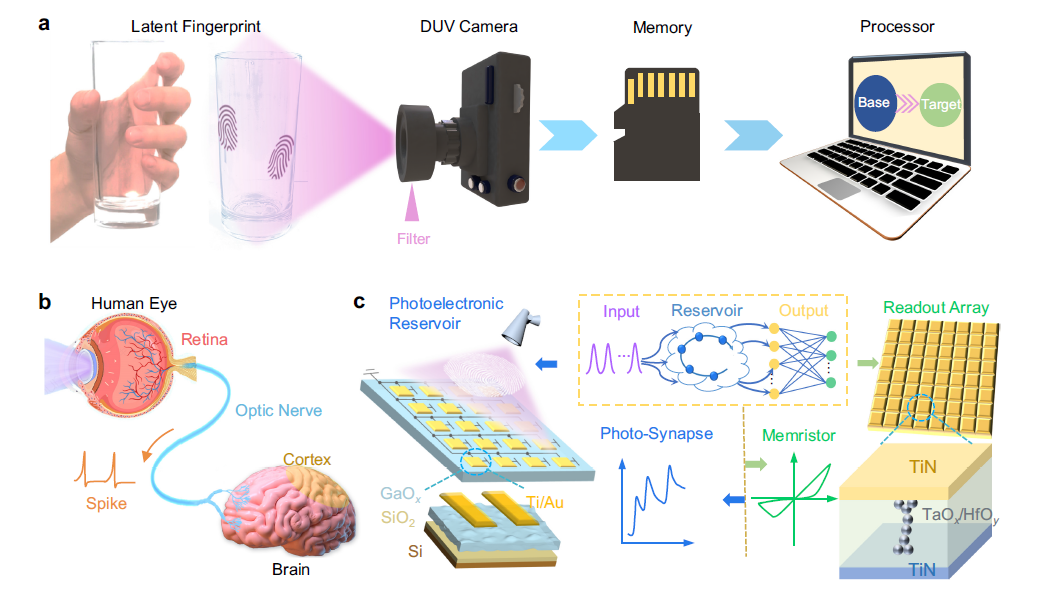 16日,记者从中国科学技术大学获悉,该校微电子学院龙世兵教授团队与复旦大学芯片与系统先进技术研究院刘琦教授团队合作,利用深紫外(DUV)光电突触结合忆阻器的构架实现了基于储备池计算(RC)的指纹识别系统,相关成果在线发表于《自然·通讯》。