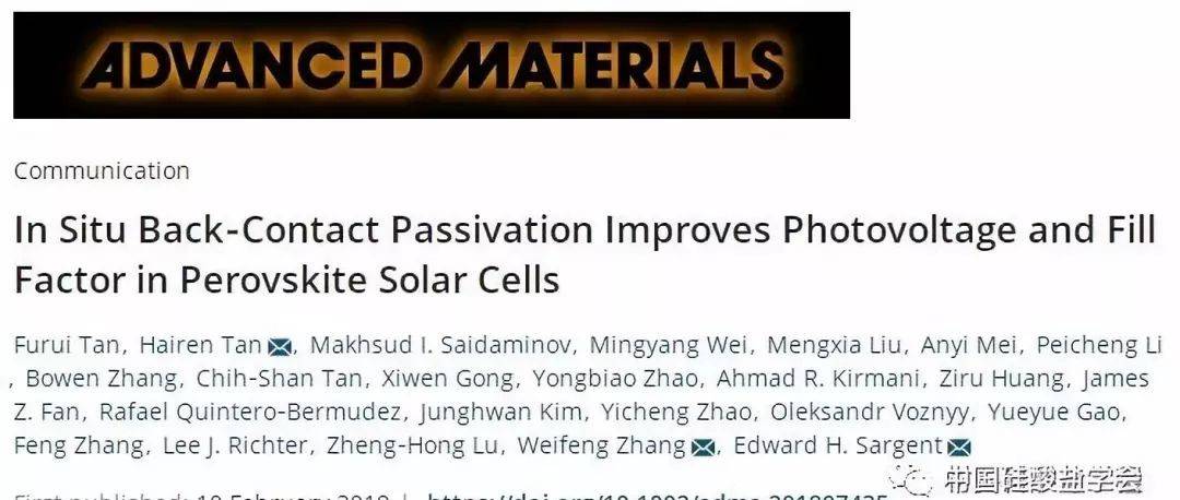 研究团队在后续研究n-i-p型钙钛矿太阳能电池工作稳定性过程中发现,钙钛矿电池在运行过程中会出现器件的突然失效(Catastrophic Failure)。通过光致发光(PL)成像分析确定短路位置发生在金属Ag电极的边缘。进一步通过SEM和TOF-SIMS分析证明了Ag+离子在器件边缘发生迁移扩散,而器件内部的电极以及钙钛矿薄膜却没有发生明显的变化。研究人员利用SEM表征了沉积在Spiro-OMeTAD上的Ag薄膜的形貌,结果表明由于Ag与Spiro-OMeTAD的不浸润性,边缘的Ag颗粒团簇尺寸比中心部分的尺寸更小、更疏松。基于此,研究团队推断器件突然短路失效的机制为:光照下钙钛矿薄膜分解并形成多碘化合物发生扩散并与电极边缘松散的Ag簇并发生反应而导致Ag电极被腐蚀,腐蚀产生的Ag+离子穿过Spiro-OMeTAD而向钙钛矿中迁移,最终在Ag电极和钙钛矿之间形成丝状电导,导致器件短路。基于此,研究团队在Spiro-OMeTAD上沉积一层MoO3薄膜,改善沉积Ag电极过程中Ag的生长,获得了边缘更加致密的Ag电极。此外,由于MoO3薄膜的引入使得Spiro-OMeTAD和Ag电极之间的空穴提取效率更高,避免了空穴在该界面的积累,进而有利于稳定性的提升,实现器件运行600h以上而不发生前述的突变失效(图2),有效提升器件的稳定性能。相关成果以Revealing the Mechanism behind the Catastrophic Failure of n‐i‐p Type Perovskite Solar Cells under Operating Conditions and How to Suppress It为题发表于Advanced Functional Materials。