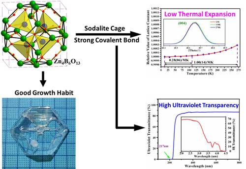 双折射晶体是产生和调制偏振光的关键材料,被广泛应用于光通信、偏光信息处理、高精度科研仪器以及激光工业等领域。当前能应用于深紫外波段(< 200 nm)的双折射材料设计是一个挑战。为了满足科技发展需求,开发综合性能优异的新型深紫外双折射材料仍然是亟待解决的问题。研究发现,具有共轭π轨道的 [BO3]3-平面基元能够产生大的极化率各向异性,进而利于获得大的双折射率,是短波长双折射材料设计的优异的基本结构基元。