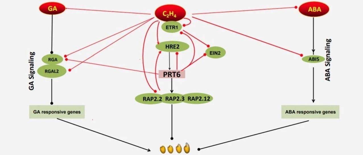 通过分子生物学、遗传学及生物化学等实验,科研团队揭示了SD6和ICE2均直接靶向脱落酸(ABA)8′-羟化酶基因ABA8ox3启动子上,两者分别识别启动子上的G-box基序或E-box基序从而实现对同一靶基因的反向调控。SD6和ICE2通过拮抗调控另一个转录因子OsbHLH048间接地调控了ABA的关键合成调控基因即9-顺式-环氧类胡萝卜素双加氧酶基因NCED2。这揭示了一个新的激素平衡调控范式,即拮抗的转录因子对可通过直接地调控ABA的代谢,并间接地调控ABA的合成,从而实现ABA含量的及时高效调控,以切换种子的休眠与萌发。