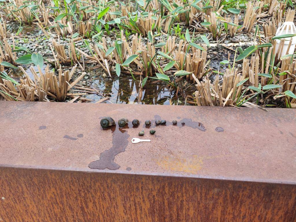 “这东西又来了!这是今天新出现的,感觉又产了好多。”湖北省武汉市城区的一个公园内,公园管护人员指着水塘边石块上附着的福寿螺卵块告诉记者,这段时间他们的重点工作之一就是清理福寿螺及其卵块,但依然难以彻底清除。