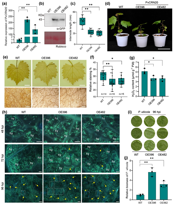 过表达PvCRN20促进葡萄霜霉菌的侵染定殖。