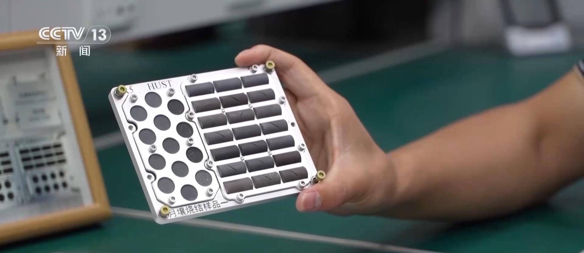 国家数字建造技术创新中心、华中科技大学教授 周诚:这就是马上要跟随天舟八号货运飞船在空间站当中去做暴露实验的样品。这些都是模拟月壤烧结的样品,一共分为三块样品板,实际上我们设计的整个暴露时间是三年,所以每隔一年我们会下行一块样品板,带着在空间站暴露之后的样品返回地球,然后再来做相关的实验。