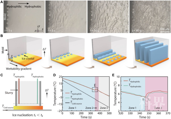 在自然界中,水往低处流是一种极为普遍的现象,而要实现水向高处的流动往往需要额外的驱动力,例如:血液依靠心脏昼夜不停地收缩和舒张得以向人体各个器官运输;植物依靠渗透压从土壤中吸取水分输送到枝叶,展现出旺盛的生命力。近年来,科研人员发现自然界中许多生物的表面具有各向异性,在不消耗外界能量的情况下可以自发地实现液体的定向运输(如:甲壳虫、猪笼草等)。受此启发,在一维到三维各向异性润湿性梯度材料的制备及其定向运输液体方面取得了很多成果。其中,三维多孔膜材料(Janus膜)由于两侧具有不对称的性质,展现出优异的水定向运输性能及极大的实际应用价值而备受关注。