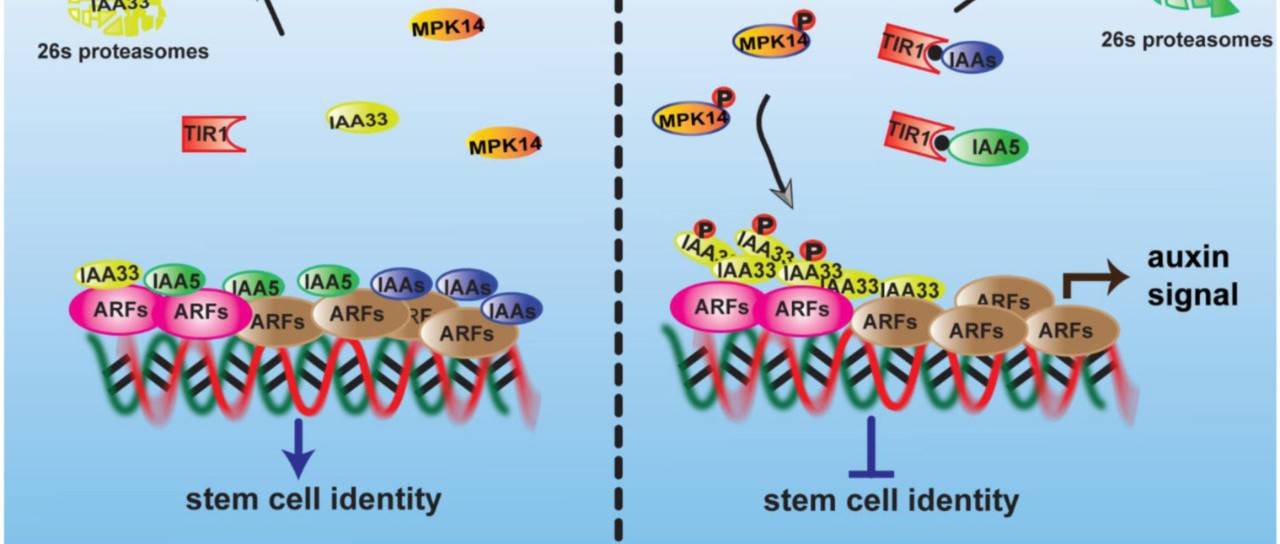 1880年,英国著名的博物学家Charles Darwen和他的儿子Francis Darwen研究了植物的向光生长,推测产生于胚芽鞘顶端的某种信号向下运输到生长区从而使背光侧比向光侧生长得更快,导致植物向光弯曲生长。差不过50年之后,生物学家Frits Warmolt Went博士在燕麦胚芽鞘尖端分离出这种能促进植物幼苗生长的物质,命名为“auxin”,取自希腊语“auxein”,具有生长及增加的含意。人们故而将“auxin”翻译为“生长素”。正如生长素最早被发现时所体现的作用以及其名字本身所代表的含义,生长素最重要的作用之一在于通过控制植物细胞的生长(cell expansion)进而影响一系列的生长发育过程,包括器官膨大、向性生长、顶端弯钩、根毛发育,以及植物对光温变化的生长响应(如避荫反应,高温徒长)等等。尽管生长素促进细胞生长的作用发现已久,其中的分子机制一直不太清楚。20世纪70年代,学者们提出细胞的酸生长理论,即生长素通过激活细胞膜上的H+-ATP酶,酸化细胞壁,从而促进细胞生长。由于缺乏确凿的遗传学证据和生化机制的支持,酸生长理论一直饱受质疑。